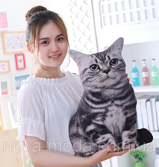 Інтер'єрна подушка кіт, подушка на диван сірий кіт, подушка 3D